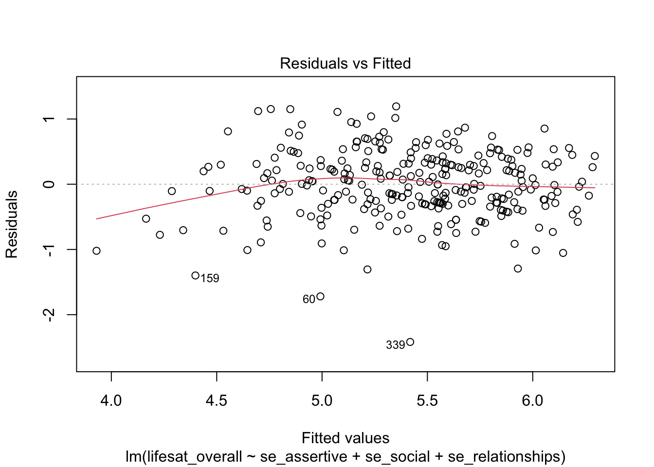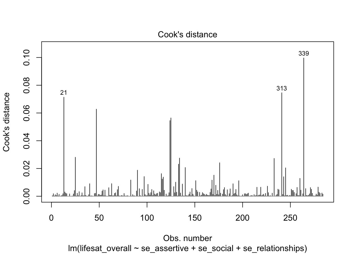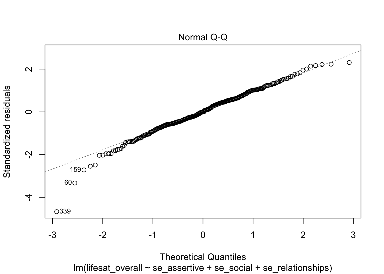 As a first example, let us predict adolescents’ overall grade average by the three subscales from the academic self-efficacy domain. The data set should thus include the variables ID